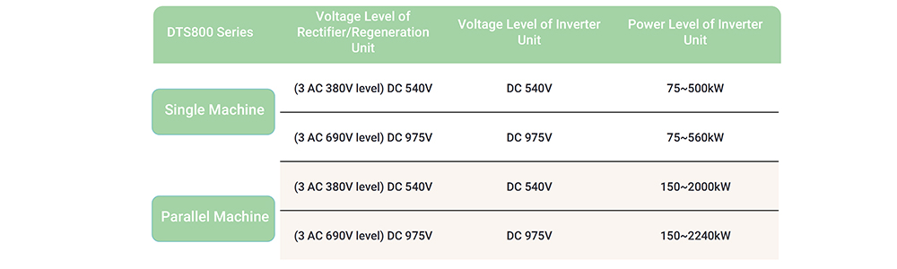تعتبر منتجات AFE من سلسلة DTS800 مناسبة بشكل مثالي للتطبيقات التي تتطلب إمدادًا مستقرًا بالطاقة وتجديدًا فعالًا لطاقة كبح المحرك إلى الشبكة، بما في ذلك: